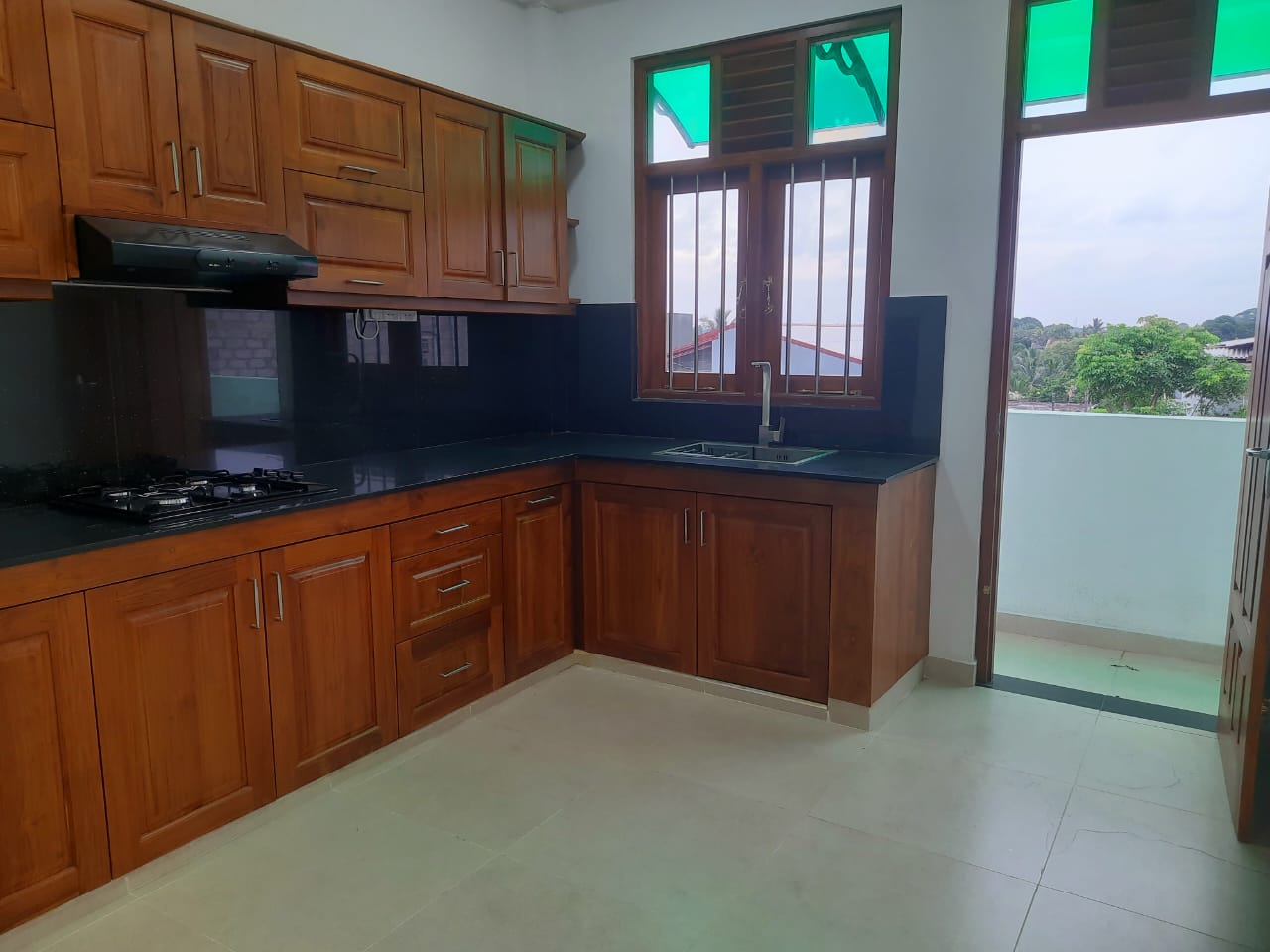 -2 Modern kitchens with treated teak pantry cupboards & ELBA Exhaust Hood