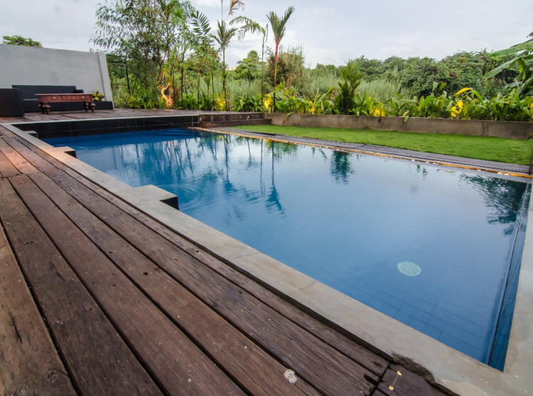 – With a pool